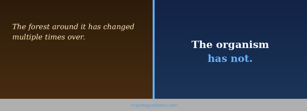 Here is the thing that gets me every time I think about it. The trees this Armillaria is currently living in are not the original trees. This organism has been killing trees, letting them decompose, and then colonising the next generation for thousands of years. The forest around it has changed multiple times over. The organism has not.