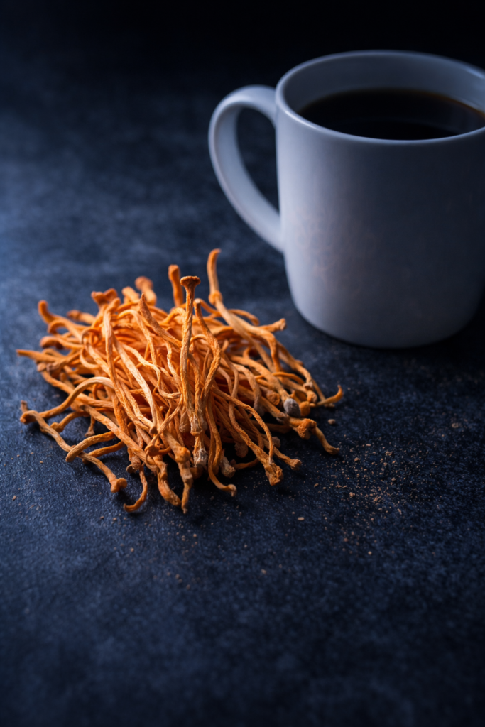 This is why the two complement each other in a coffee blend. Caffeine addresses perceived energy (how alert you feel). Cordyceps addresses actual energy (how efficiently your cells produce it). Neither replaces the other.